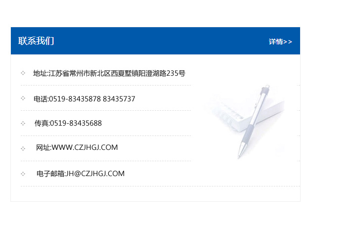 地址:常州市新北區友邦商務大廈1幢16、17層  電話:0519-85101652  傳真:0519-85112595  郵編:213022  網址:www.cz-jiayue_cn.zlxacous.com  郵箱:xiajifengaa@163.com
